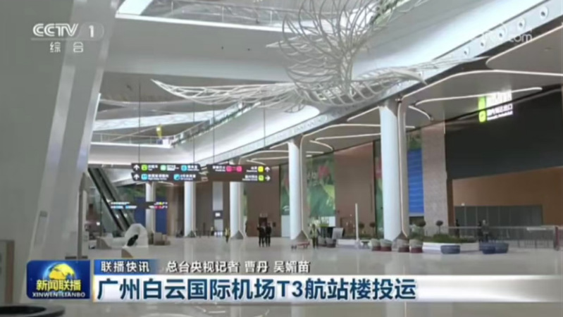 艺术设计学院崔晓飞老师设计团队创作的大型装置艺术作品“栖云”亮相广州白云T3国际机场