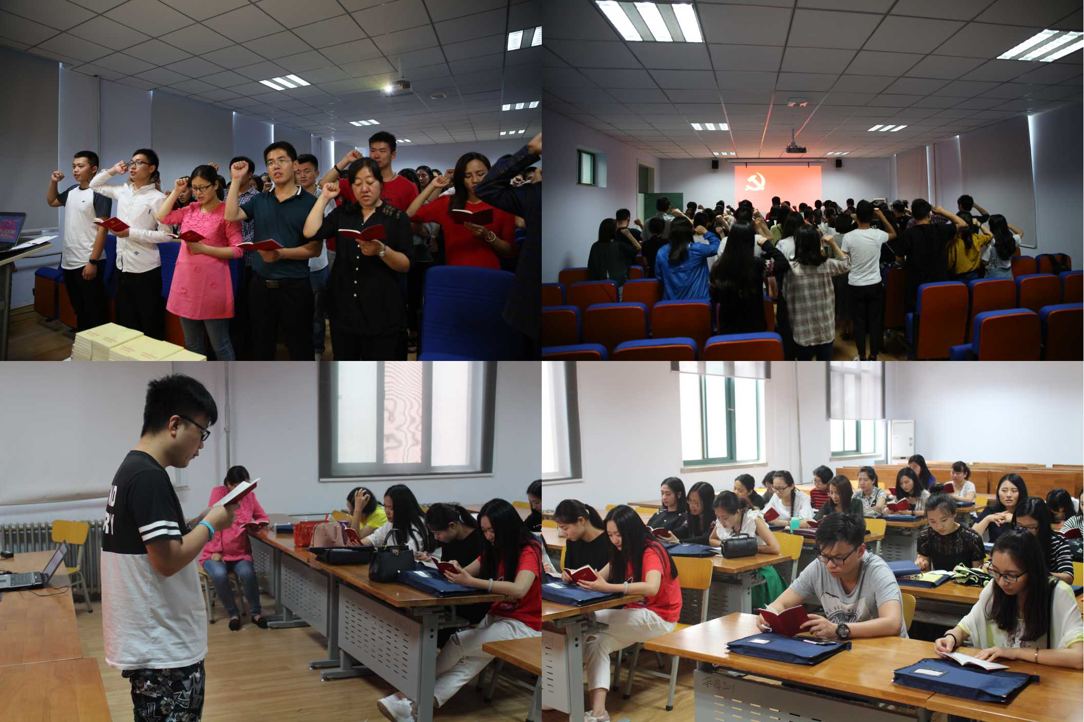 此次活动包括发放学习材料、学习文章、学习党章、重温入党誓词等四个环节。工欲善其事,必先利其器,活动伊始,学院首先给全体本硕学生党员发放《中国共产党章程》、《中国共产党廉洁自律准则》、《中国共产党纪律处分条例》、《习近平总书记系列重要讲话读本》、《“两学一做”学习教育学习笔记》等学习教育材料。随后,艺术设计学院党总支组织委员任红印老师就“两学一做”学习教育的具体内容和学习要求做了说明,并和全体学生党员一起学习了人民日报评论员文章《基础在学关键在做》、杨笑祥《用行动体现信仰信念的力量》等好文章。接下来,艺术设计学院任红印老师、霍庆媛老师、唐丹丹老师分别主持召开三个学生党支部支部党员大会,集中学习了党章并交流学习心得,在学党章的过程中,全体学生党员得到了一次精神上的洗礼,同时对党员的权力和义务进一步加深了理解。最后,全体学生党员在任红印老师的带领下,重温入党誓词。