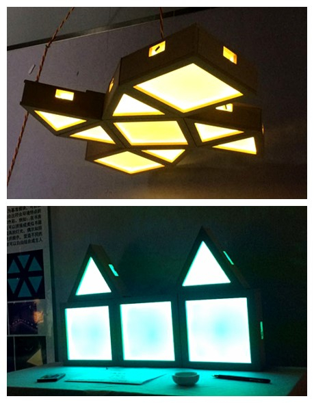 设计理念:以三角形和正方形为基准模块,可以根据所处环境任意组合,同时可以调节亮度和色彩。