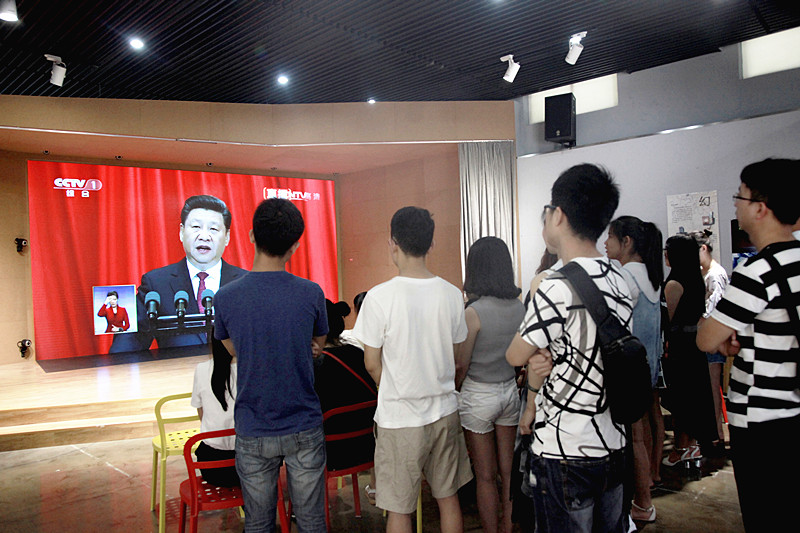 7月1日上午10时,庆祝中国共产党成立95周年大会在北京人民大会堂隆重举行。中共中央总书记、国家主席、中央军委主席习近平出席大会并发表重要讲话。艺术设计学院党总支组织师生党员在东四楼301学术报告厅和艺术设计展厅观看大会直播。