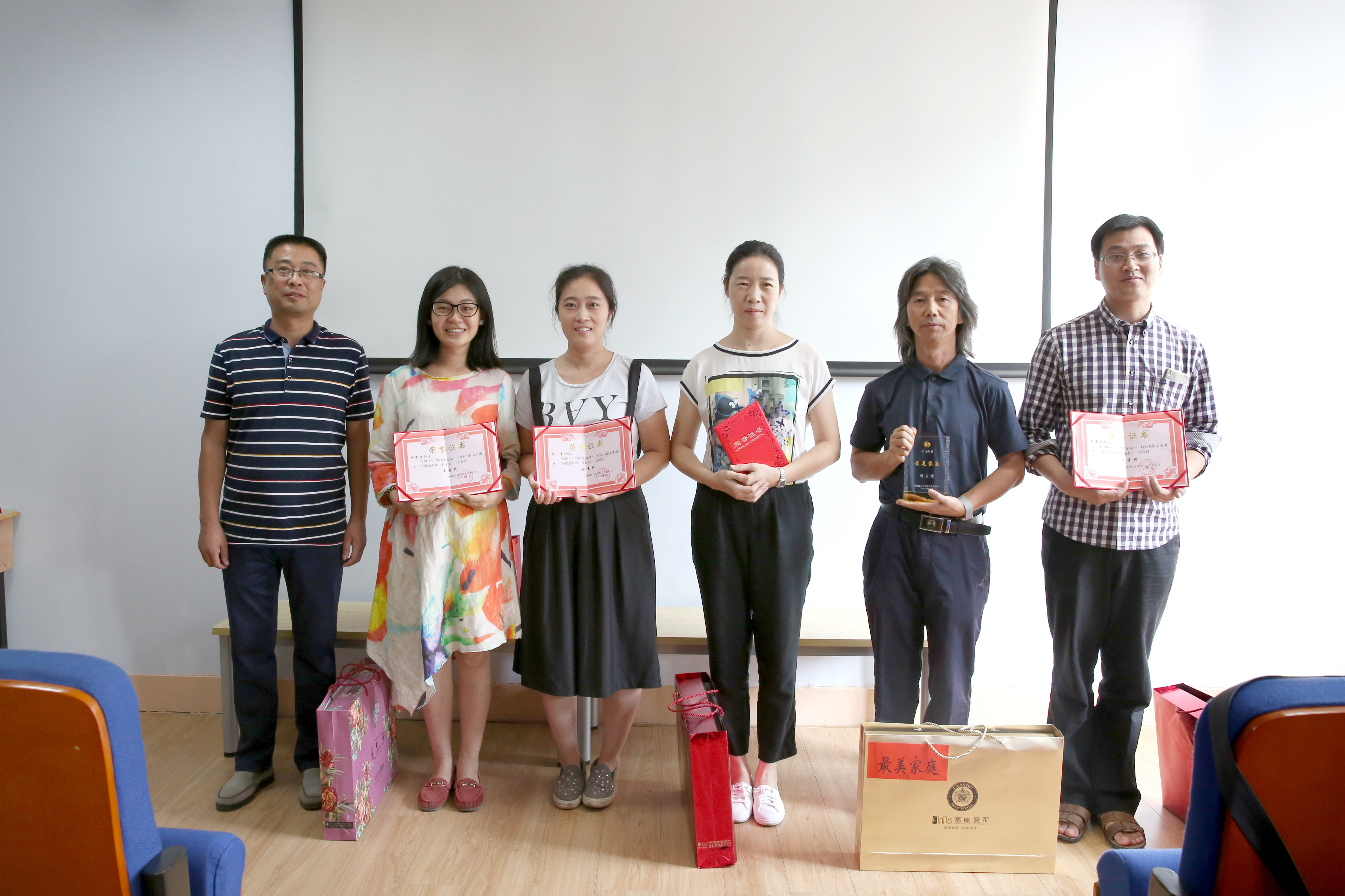 接着,学院院长曹阳为获得“文明教师”的十二位老师颁发了荣誉证书;党总支书记邵元珠为获得热心公益类“最美家庭”的冯玉雪老师,获得“一封家书”征文二等奖的王建浩老师、张静老师,三等奖的方梦雪老师,优秀奖的郭星老师分别颁发了荣誉证书和奖品,并进行合影留念。