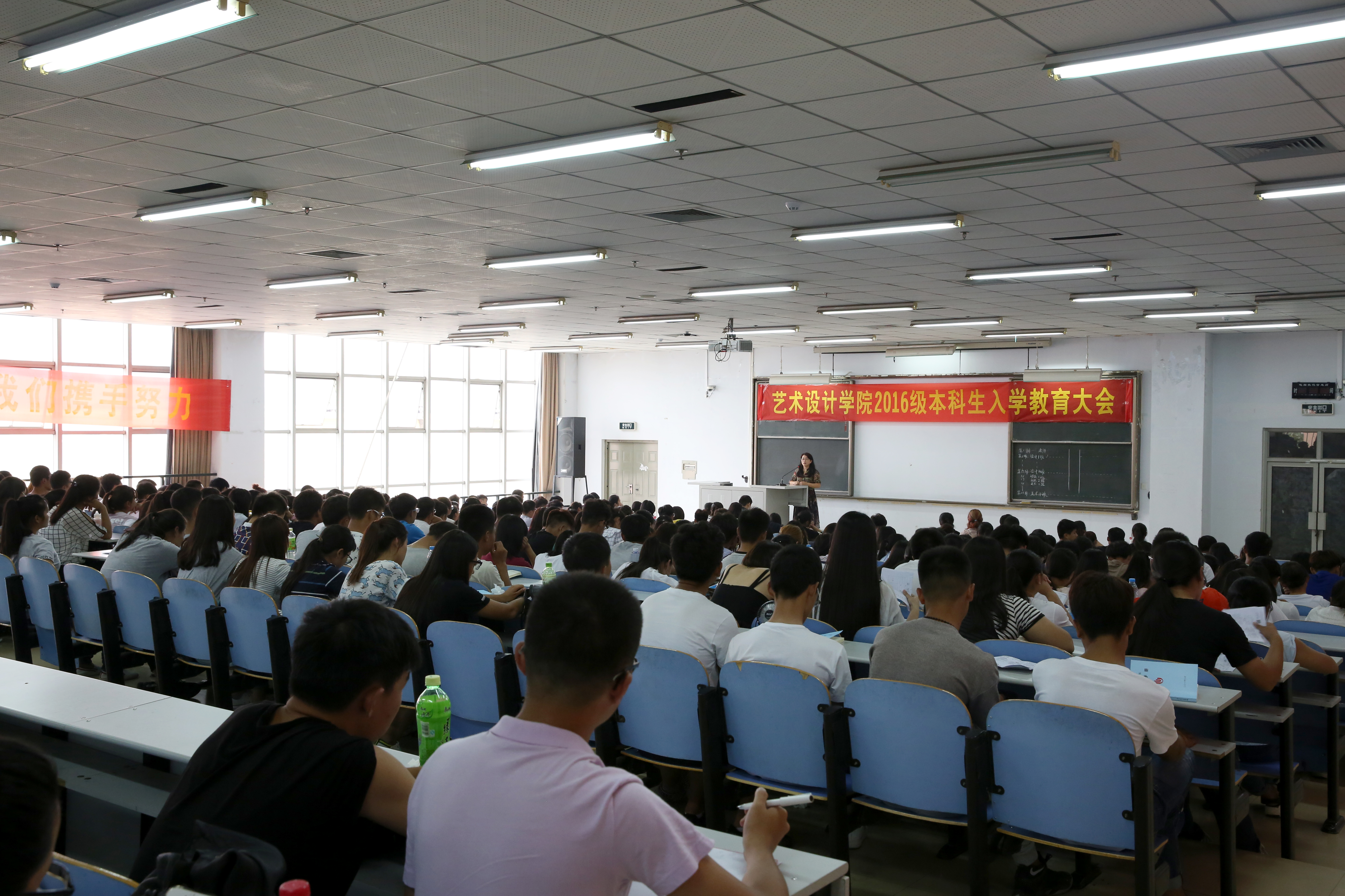 9月24日下午,艺术设计学院在教三楼302教室召开2016级本科生入学教育大会。学院党总支书记邵元珠老师、党总支副书记张莉老师、全体辅导员以及2016级全体新生参加了主题教育。大会由院分团委书记任红印老师主持。