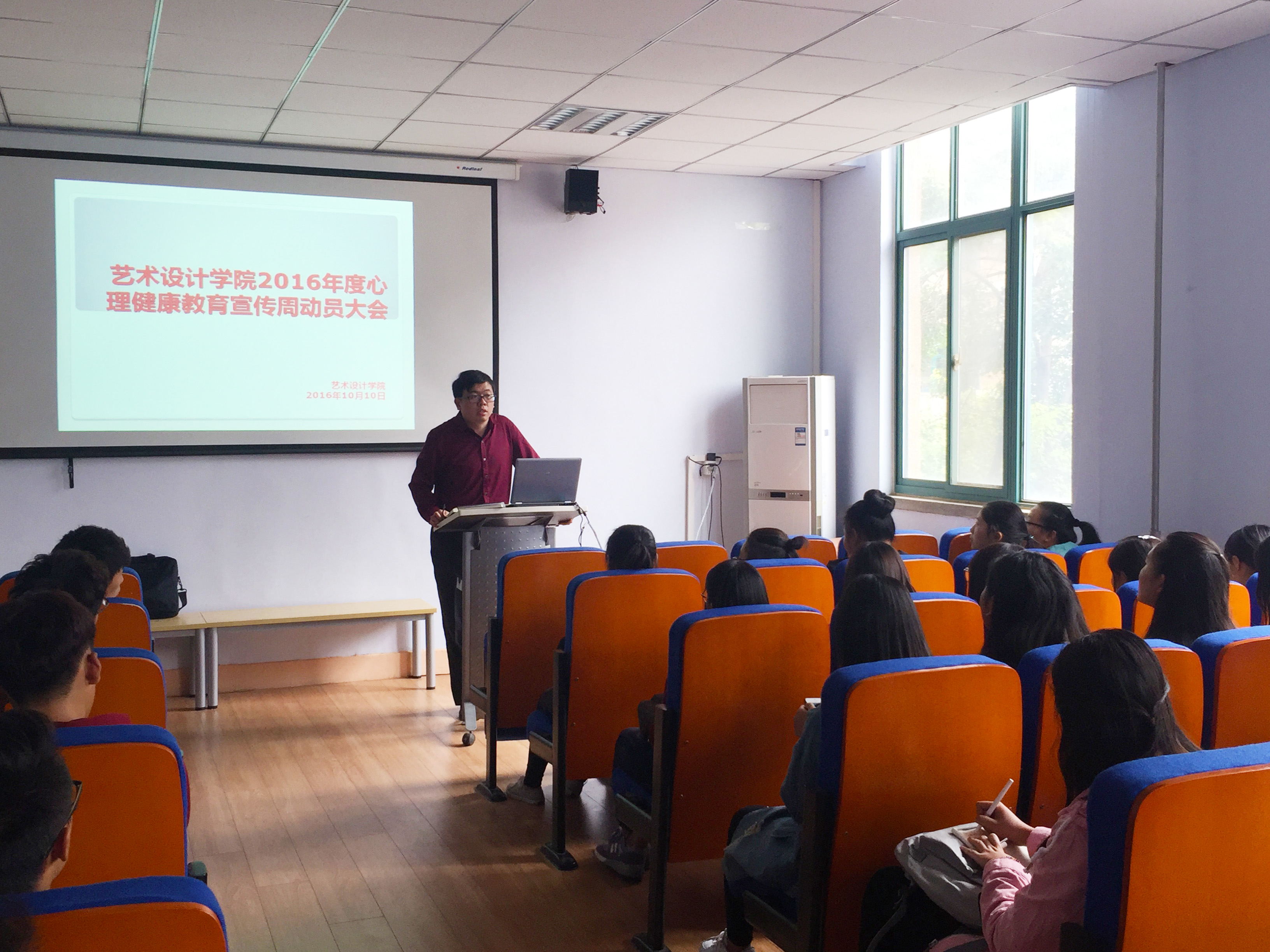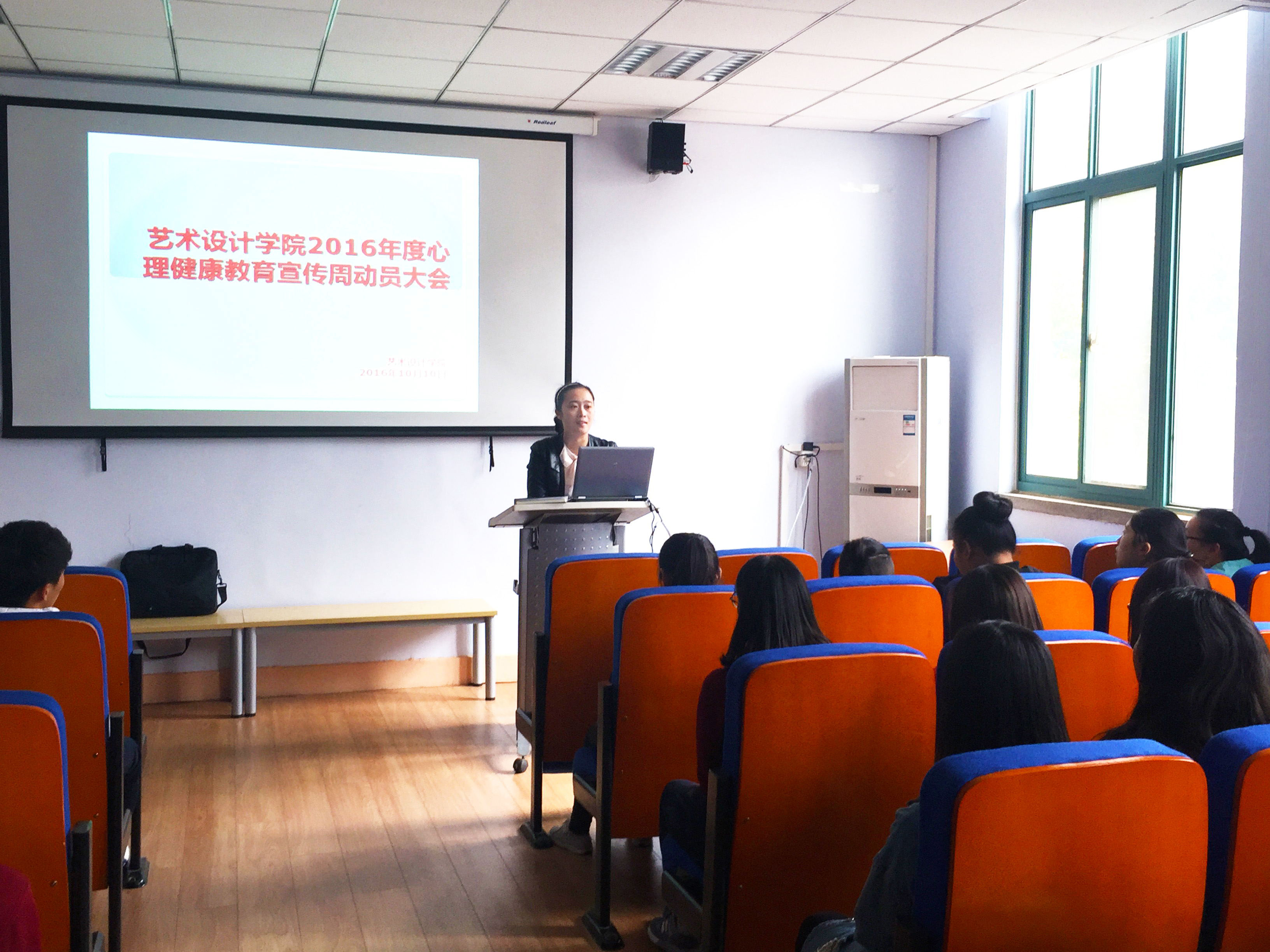 为更好的做好艺术设计学院学生心理健康教育工作,10月10日中午,我院在东四楼301召开2016年度心理健康活动周动员大会。艺术设计学院学工办副主任孙丰老师、心理健康专职辅导员郭星老师,各班心理委员及心理部全体成员参加了此次会议。会议由郭星老师主持。