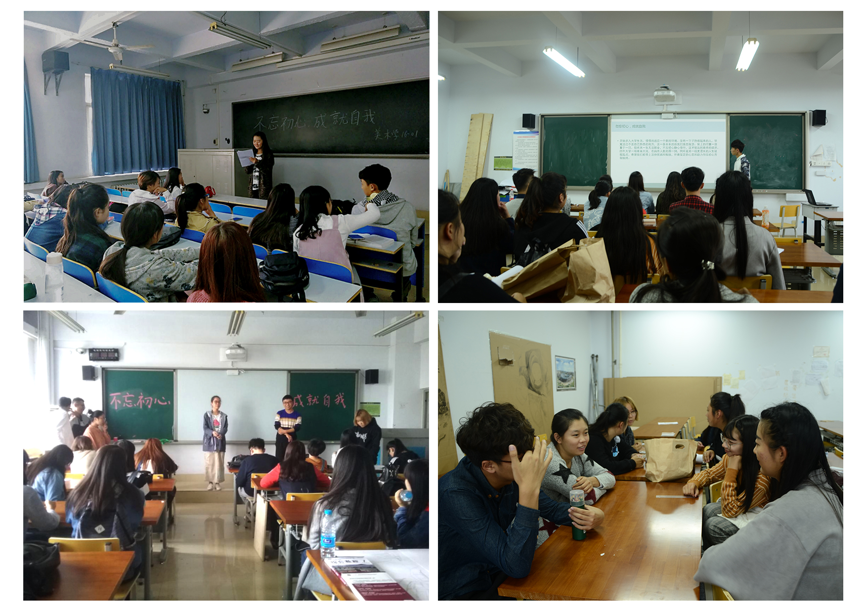 为更好的宣传心理健康知识,营造关注心理健康、重视心理健康的氛围,2016年10月,艺术设计学院组织本科一、二、三年级各班举行了以“不忘初心,成就自我”为主题的心理健康班会。