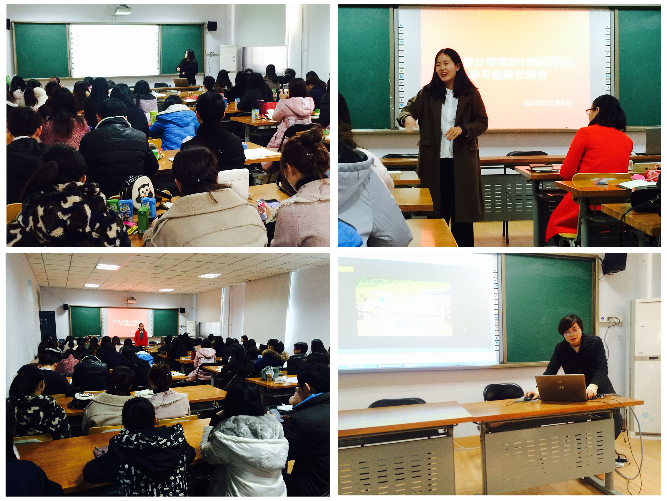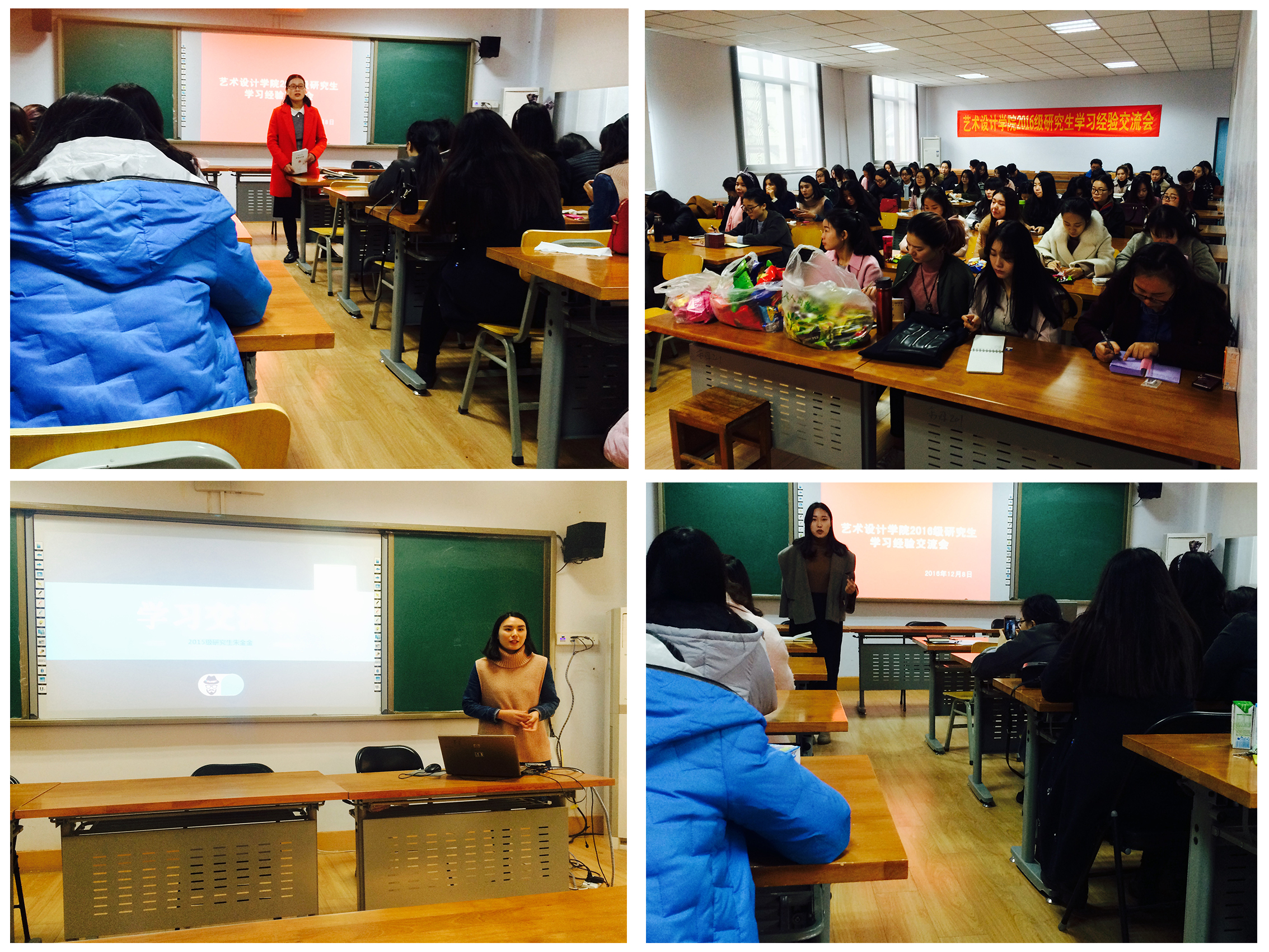 2016年12月8日上午,艺术设计学院在东四楼201教室举行2016级研究生学习经验交流会,研究生辅导员唐丹丹老师主持会议,2016级、2015级全体研究生以及荣获国家奖学金的李甜甜和刘东霞、荣获一等学业奖学金研究生代表蔡琳、胡茜茜、朱金金、李亚晗共计100余人参加了此次活动。
