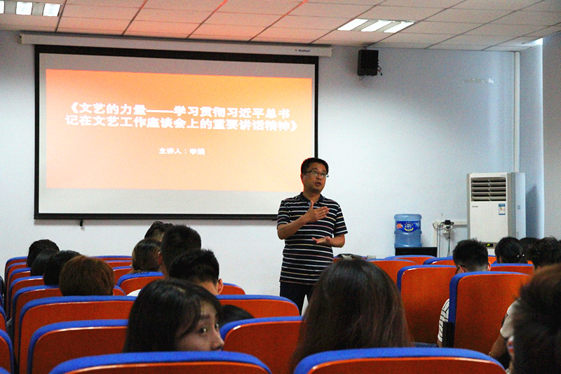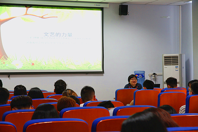 为深入贯彻习近平总书记在文艺工作座谈会上的讲话精神,丰富我院“两学一做”学习教育的活动形式, 5月26日下午,学院邀请省社科院副研究员、中原文化研究杂志社副主编李娟老师做了一场以“文艺的力量”为主题的讲座。讲座由总支书记邵元珠主持,艺术设计学院百余名学生党员和学生干部代表到场聆听。