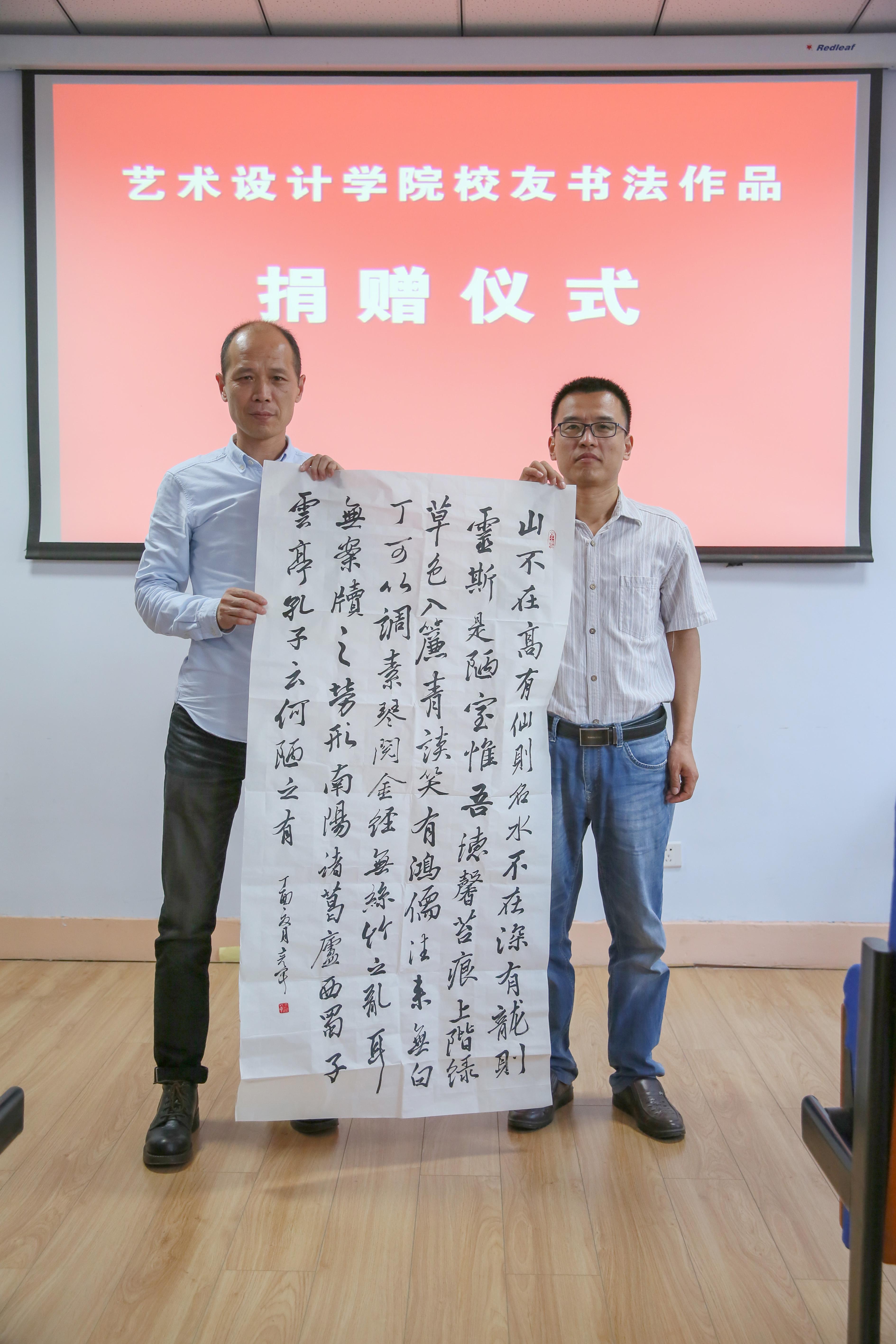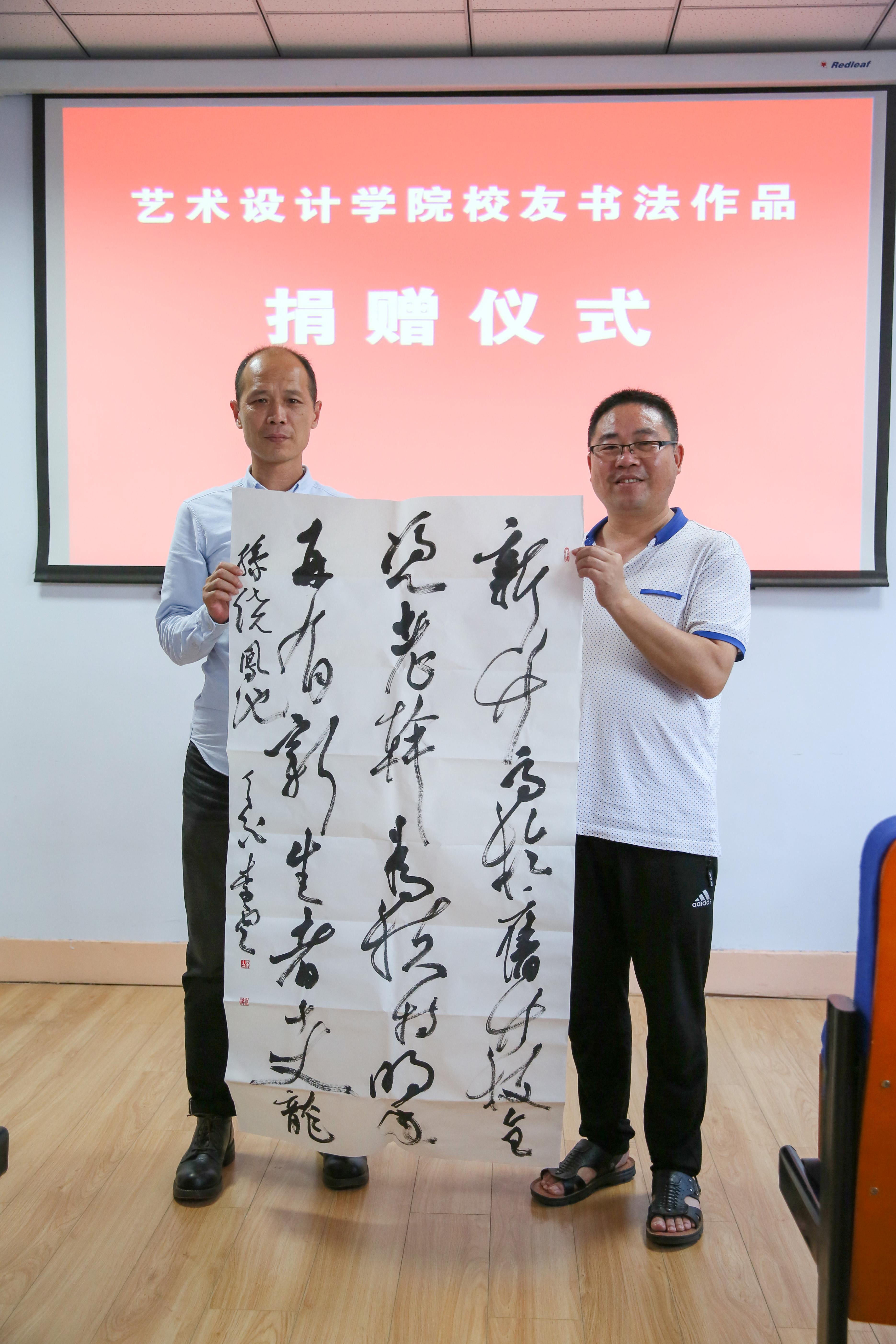 为庆祝我校建校40周年,表达毕业校友对母校的祝愿,艺术设计学院校友李云、刘自毫、刘冠辉、张彦军四位校友向母校捐赠了自己创作的书法作品。