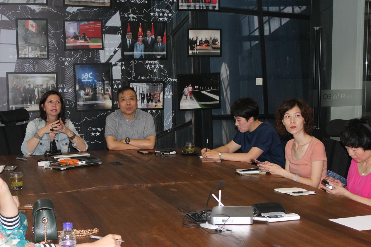 JAC女装品牌是此次交流学习的重点企业,它是由我院服装系92届校友李宝宏创办的国际一线独立设计师品牌,其总部位于我国打造的第一个时尚基地——杭州“艺尚小镇”,该品牌现在加拿大和中国有百余家实体店,考察团一行与该品牌人才资源部经理李宁就人才需求做了交流。建校40周年校庆期间,JAC总裁李宝宏校友回母校参加了庆祝活动,并为我院学生做了“校友讲坛”讲座,对母校的发展提出了宝贵意见,并希望与学院建立良好的合作关系,在人才培养、毕业生就业和校外实践教学等方面展开合作。考察团还与杭州的部分校友企业家如“沙与漠”总裁王刚、“梵绒绘”总裁姜文等就校企合作方面进行了深入研讨,制定并研究了校企合作的方案。