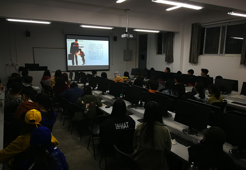 为丰富同学们的校园文化生活,展现青春活力,激励同学们砥砺前行。2017年10月30日晚上7点,艺术设计学院在禹州实训基地3号实训楼415开展励志青春电影展播活动。2016级环境设计一班和二班全体同学参加此次活动。