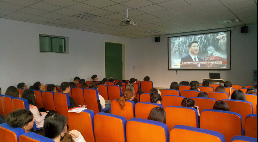 活动中,大家首先观看了十九大闭幕式,然后闫明老师带领大家学习了十九大报告中部分内容,使同学们认识到做为青年学生应该不断提高自身素质,为实现中国梦筑牢理论和思想基础。随后,闫老师结合自己的亲身经历讲述了作为一个中国人,一个合格的共产党人是无比自豪与光荣的,并以习近平总书记在闭幕式上的讲话与大家共勉:“只有进行了激情奋斗的青春,只有进行了顽强拼搏的青春,只有为人民做出了奉献的青春,才会留下充实、温暖、持久、无悔的青春回忆”。
