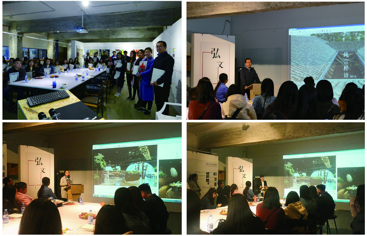 州弘文建筑装饰设计有限公司总设计师、国内高级室内建筑师、郑州轻工业学院艺术设计学院企业导师王政强先生首先带领同学们对公司进行了整体参观,同时讲解了弘文三号院的建筑改造过程及公司内部空间功能。