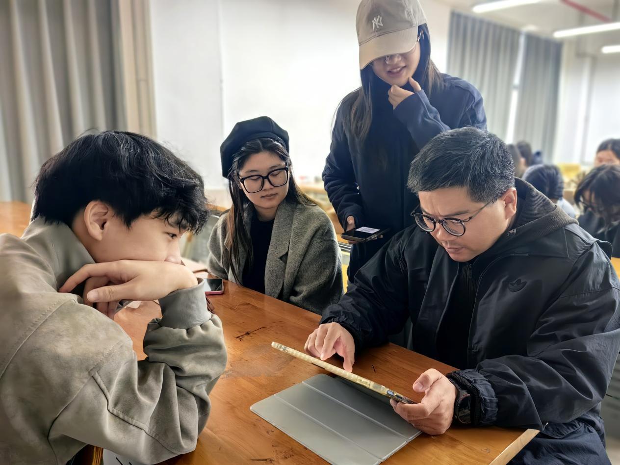 辅导现场,李亚旻总经理逐一对学生的设计作品进行细致审阅,围绕设计定位、视觉符号构建、落地可行性等核心维度展开针对性指导。他结合企业真实项目案例,从目标用户需求与商业逻辑出发,帮助学生锚定设计核心,厘清创作方向;解析了“设计-产品-落地”全流程的衔接要点,强调每一步设计都需预留实际实现空间,避免“纸上谈兵”。