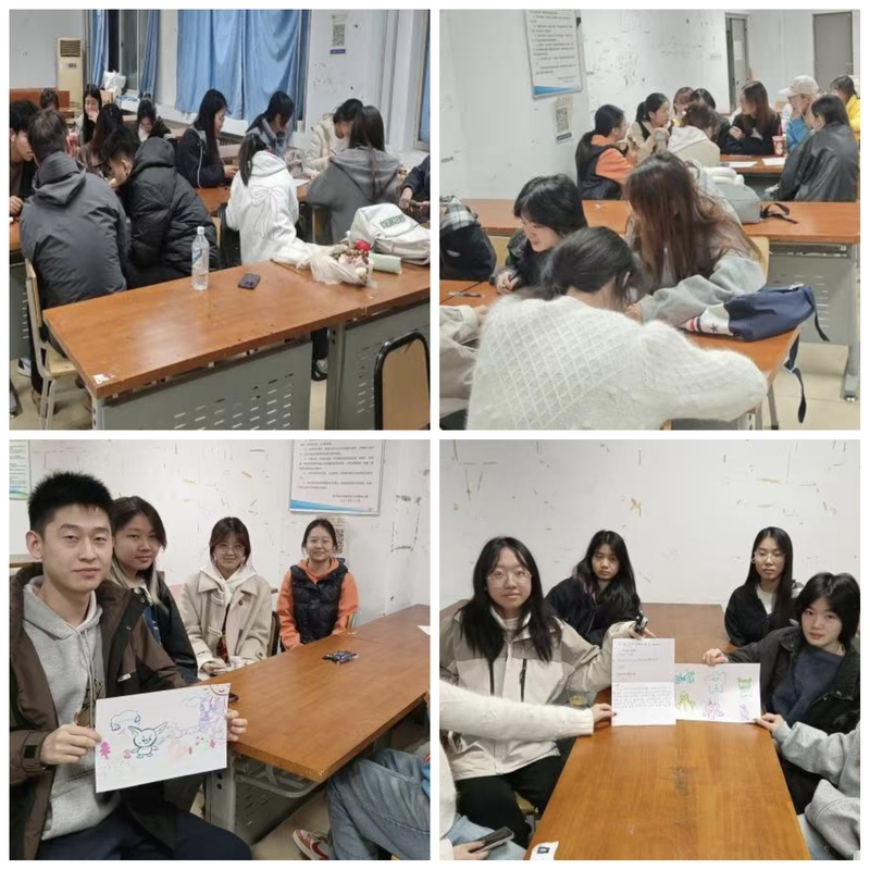 11月10日,由学院心理部主办的“绘意传情,故事共生”心理主题活动在教三706教室顺利举办。35名同学以团队协作的形式参与其中,在绘画与故事创作中解锁创意、联结心灵。作为一场低门槛、高互动的心理活动,参与者从画笔传递过渡到故事分享,不仅激发了艺术设计专业学生的创造力,更构建了释放情绪、深化协作的平台,让大家在轻松氛围中切身体会到“协作共生”的价值。