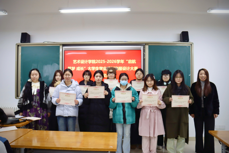 2025年12月26日下午,艺术设计学院于新大楼302举办第一届“启航·筑梦·成长”大学生学业规划海报设计大赛颁奖典礼。典礼由孔祥兰老师主持,2025级辅导员孟璐茜及90余名获奖同学参与。