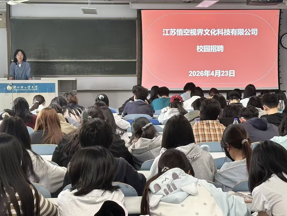 为帮助毕业生更高质量更充分就业,搭建艺术设计专业人才与优质企业的精准对接桥梁,4月23日下午,艺术设计学院在教三楼406举行江苏悟空视界文化科技有限公司专场宣讲会。江苏悟空视界文化科技有限公司文化发展中心部长李沐清、人资行政管理中心副总谢璐代表企业出席,学院动画、设计学等相关专业学生到场参加,本次活动由就业专职辅导员张广佳主持。
