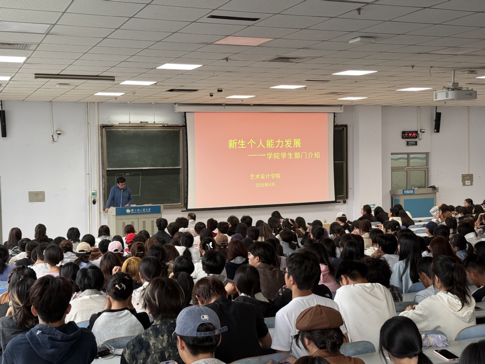 为促进2025级新生综合素质全面发展,9月26日下午,艺术设计学院在教三楼302教室成功举办了以“新生个人能力发展”为主题的学生部门介绍培训会。学院党委副书记贾红雨、团委书记孙丰、各年级辅导员参加本次会议,会议由新生辅导员孔祥兰主持。