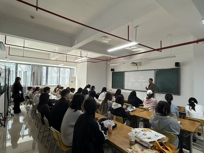 宣讲会伊始,孙林林向同学们介绍了公司的发展历程、企业文化、核心业务及行业优势,详细讲解了全速网络以“设计创造价值”为宗旨,业务涵盖用户体验咨询、交互设计、品牌视觉设计、数字营销等领域,在电商新零售、互动娱乐、3C智能制造等行业积累了深厚经验,服务过阿里巴巴、腾讯、网易等800余家头部企业,让在场同学充分感受到企业的专业实力与发展潜力。最后,孙林林重点介绍了本次面向艺术设计专业毕业生的招聘岗位,包括创意设计师、动画视频师、AI视频设计师等,并详细说明各岗位的任职要求、工作内容及发展路径。