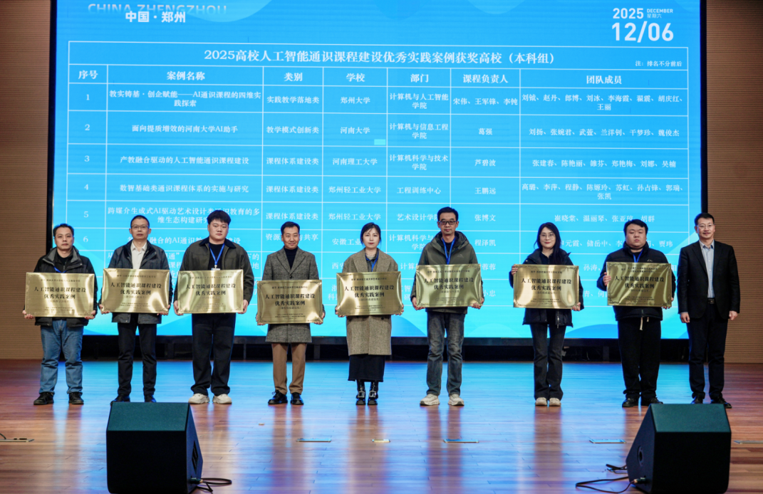 12月6日,全国人工智能通识课程体系构建与生态赋能交流会在中原工学院举行。郑州轻工业大学艺术设计学院申报的《跨媒介生成式AI驱动艺术设计类通识教育的多维生态构建研究》案例入选2025全国高校人工智能通识课程建设优秀实践案例集(本科组),并在会上获颁荣誉。